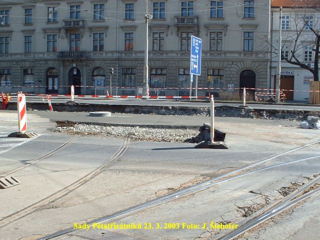 Před záhájením III. etapy rekonstrukce sadů Pětatřicátníků byl o víkendu 3. a 4. 5. 2003 přerušen