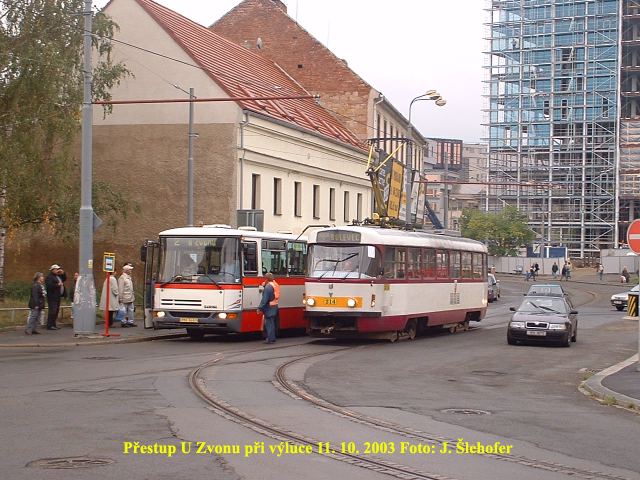 Po odkrytí koleje v předchozím týdnu, probíhala v sobotu 11. 10. 2003 k vůli výměně oblouku v křižovatce U Prazdroje - Sirkova výluka
