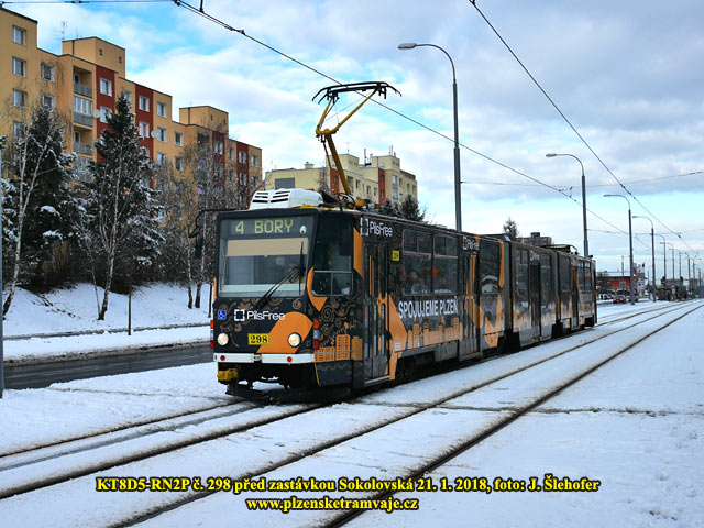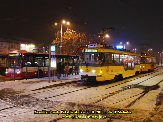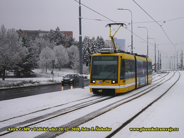 předchozím týdnu, v Plzni trochu nasněžilo až přes noc na neděli 21. 1. 2018. Níže tedy fotografie tramvají na sněhu převážně z dopoledne, kdy ještě sněžilo.