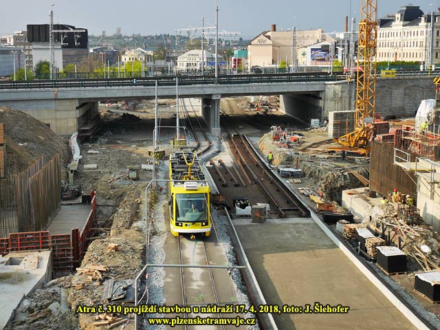 V dubnou 2018 je před nádražím poměrně rychle budována definitivní tramvajová trať. Kolejiště je opět stavěno technologií pevné jízdní dráhy s upevněním W-tram. Kolej ve