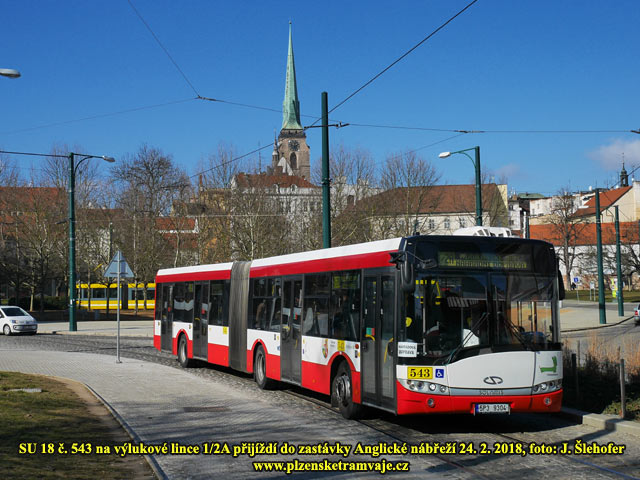 Na opačné straně pak byla v provozu linka 1/2 v trase Skvrňany - Bolevec.