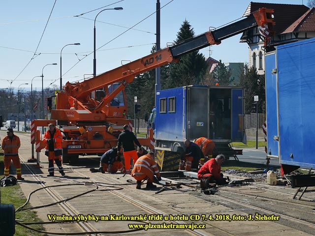 Důvodem výluky byly práce na kolejišti, konkrétně výměna výhybky na Karlovarské třídě u hotelu CD.