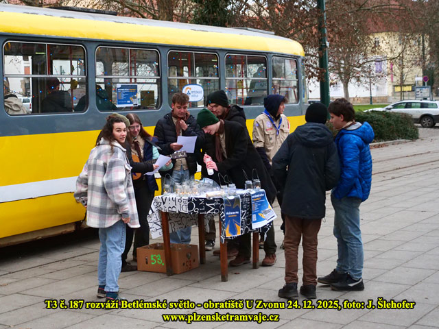 Letos poprvé vypravili skauti ve spolupráci s PMDP tramvaj pro rozvoz Betlémského světla. Dle předem zveřejněného jízdního řádu objížděla 24. 12. 2025 vybraná obratiště, kam si pro plamínek z Betléma mohli zájemci přijít. Vypraven byl historický vůz T3 č. 187, který je zachován ve stavu tak, jak dojezdil v roce 2012.
