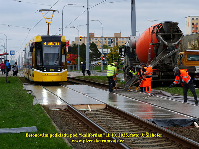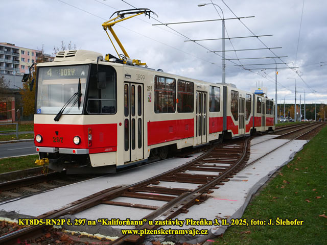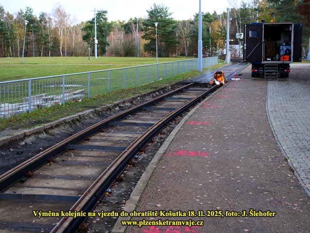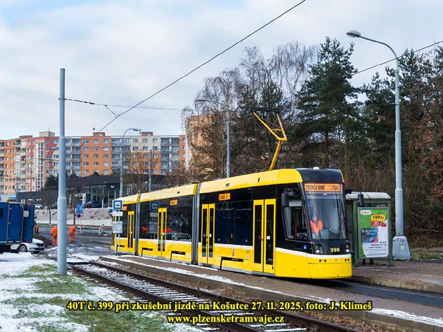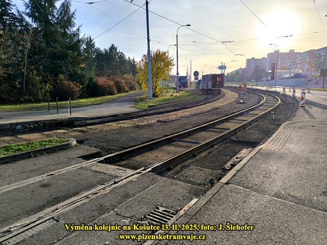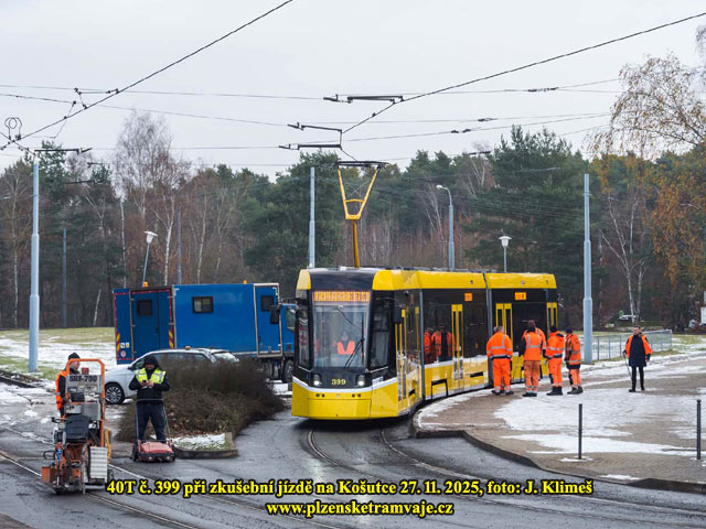 Blíží se konec výluky na Košutku. Nové kolejnice již byly zaasfaltovány a probíhají dokončovací práce jako např. zalévání spár. Ve čtvrtek 27. 11. 2025 kolem deváté hodiny proběhla na Košutce zkušební jízda. Vůz 40T č. 399 sem dojel přes "Kaliforňan" protisměrnou kolejí a po zkušební jízdě se vrátil přes "Kaliforňan" zase zpět.
