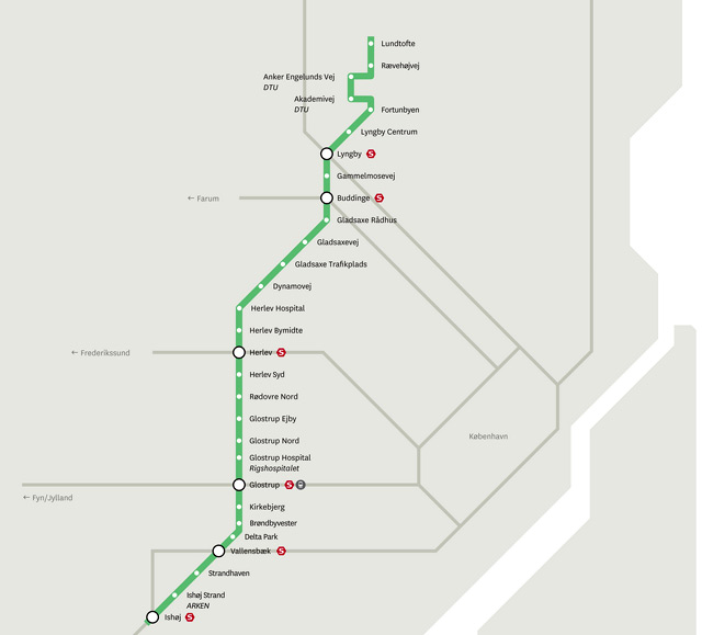 V hlavním městě Dánska, v Kodani, je rozvinutý systém příměstský vlaků S-tog (S-Train, S-Bahn), které jsou spolu s metrem páteří městské hromadné dopravy. Automatické metro je v Kodani v provozu od roku 2002.
