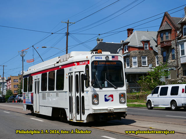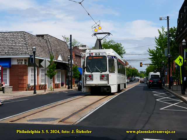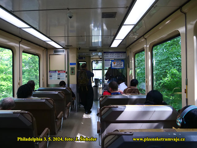 Další zvláštní linkou je tzv. Norristown High Speed Line, někde označovaná také číslem 100. Spíše než o tramvaj, jde o příměstskou železnici. Provozovaná vozidla pak připomínají vozy metra. V době naší návštěvy byly v provozu nasazeny dvouvozové soupravy, ale údajně občas jezdí i jen sólo vozy. K napájení je používána třetí boční kolejnice, tedy podobně jako u metra.